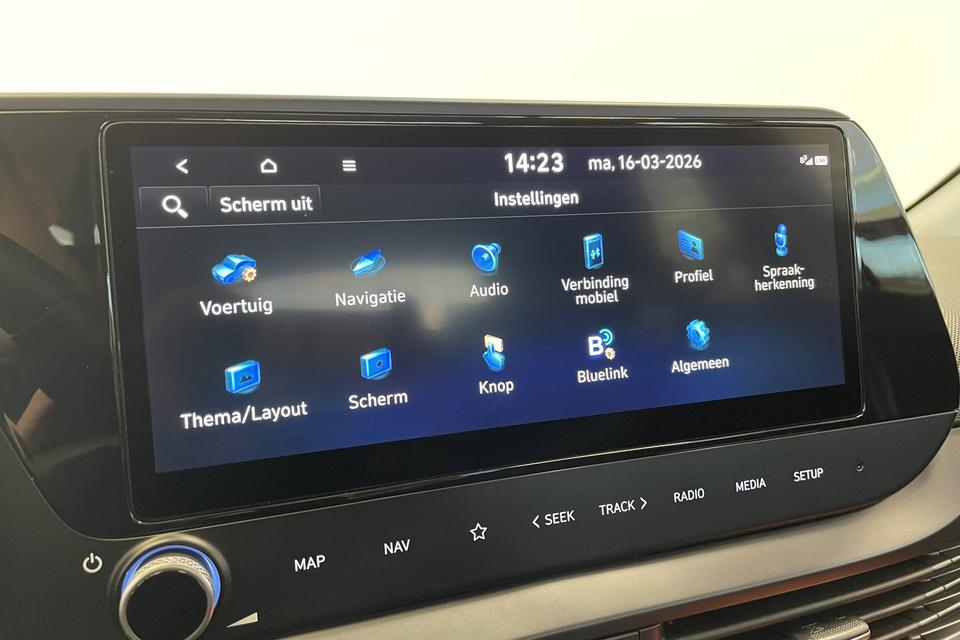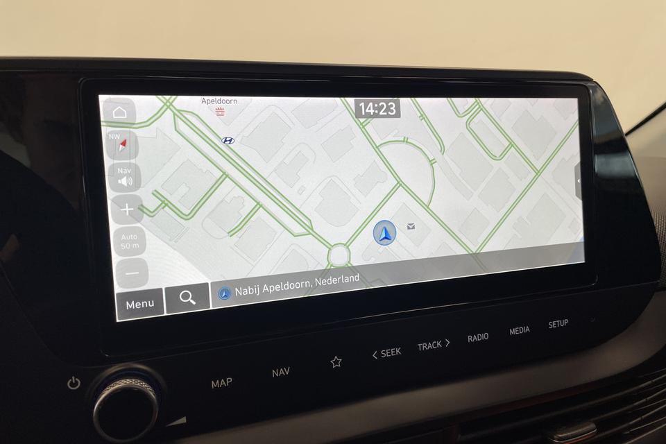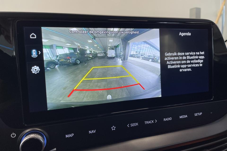 Het digitale dashboard rekent mee, denkt mee en rijdt mee. Alle info overzichtelijk in beeld, overal. Met behulp van de achteruitrijcamera kunt u zo strak inparkeren als u maar wilt! Praat tegen deze auto en de auto doet wat u wilt dankzij de ingebouwde spraakbediening. Met uw smartphone maakt u overal contact met de auto. Remote services geven direct inzicht in uiteenlopende functies en zijn op afstand te activeren. Met de routebegeleiding van het full map navigatiesysteem kunt u zich volledig op het verkeer concentreren. U bent in deze Hyundai ook voorzien van draadloos opladen, DAB ontvangst, cruise control, airconditioning, automatisch dimmende binnenspiegel en lederen stuur.